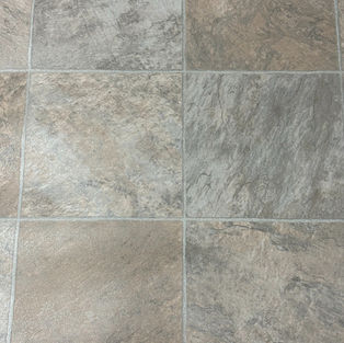 A gray sheet vinyl with ceramic tile like pattern.
